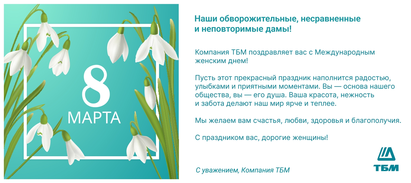 Компания ТБМ поздравляет с Международным женским днём