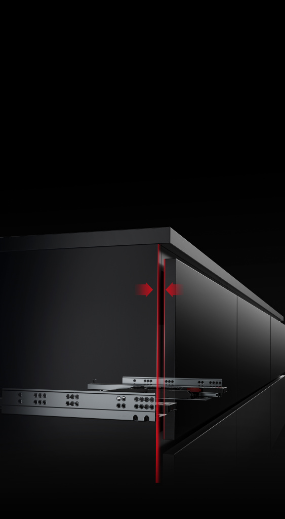 Выдвижные ящики CRYSTAL оснащены направляющими, которые гармонично сочетают лаконичный дизайн с превосходным комфортом движения. Вы можете выбрать направляющие с механизмом Soft+Push, только с доводчиком или открытием от нажатия.