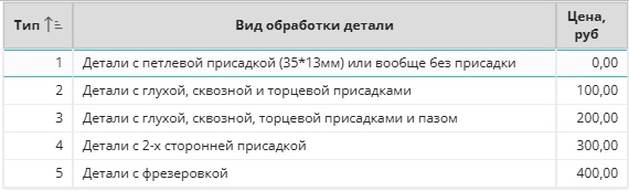 - Если на фасаде выбрать только 5-ый тип присадки, к стоимости фасада прибавляется 400 руб.