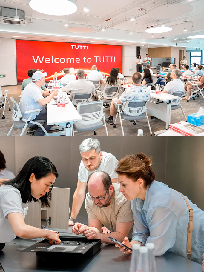 Визит в компанию Tutti начался с большой презентации продуктовых линеек ТБМ, далее — производственные мощности, но особое впечатление произвели их шоурум и смарт-склад. Это полностью автоматизированная система, где участие человека сведено к минимуму, а точность и скорость отгрузок близки к абсолютным. Увидеть своими глазами, как современные IT-решения управляют огромными запасами продукции — это ценный опыт для любого производителя, думающего об оптимизации своих складов.