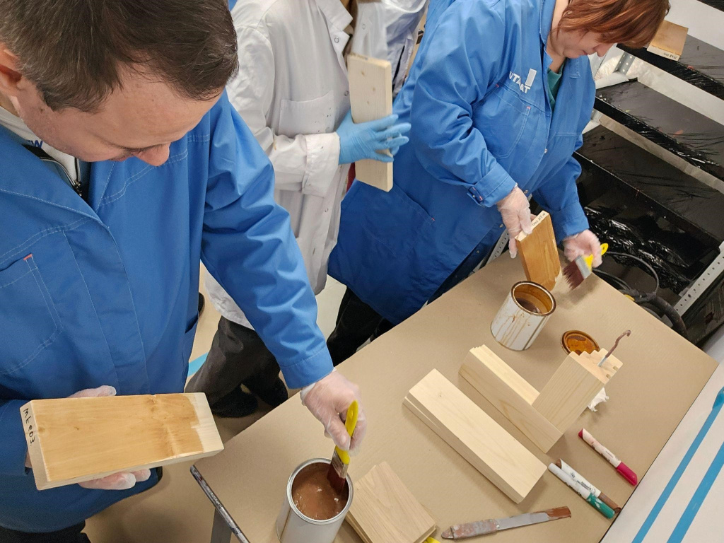 В рамках практических занятий специалисты ТБМ работали с материалами, выполняя выкрасы и формируя различные схемы покрытий.