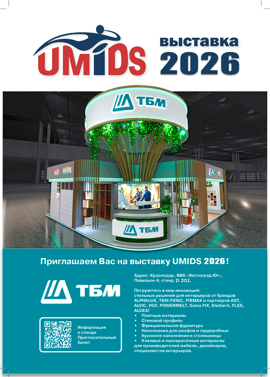 Приглашаем производителей мебели, дизайнеров и специалистов по интерьеру посетить стенд компании ТБМ на международной выставке UMIDS 2026. Мероприятие пройдет в Краснодаре на площадке ВВК «Экспоград Юг».