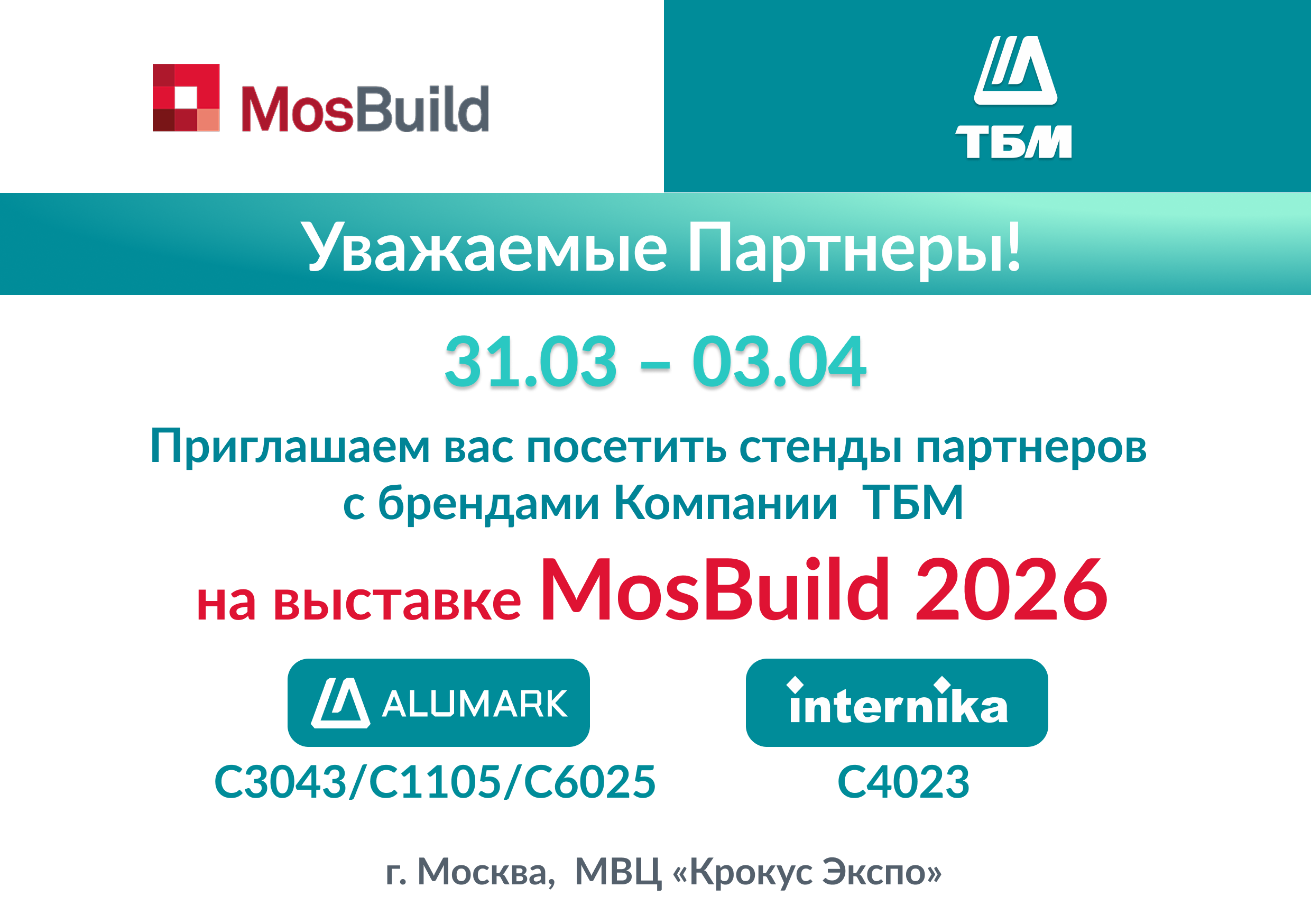 Приглашаем на выставку Mosbuild 2026. Алюминиевые комплектующие, решения ALUMARK и INTERNIKA на стендах наших партнеров