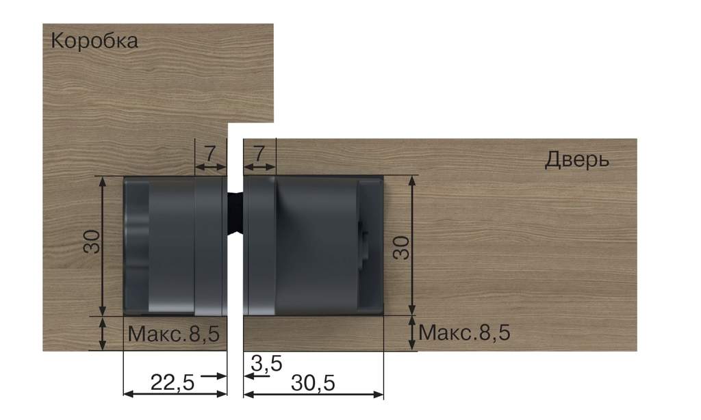 - Малая глубина врезки на стороне дверной коробки всего 22,3 мм
