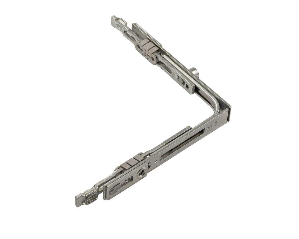 УГЛОВОЙ ПЕРЕКЛЮЧАТЕЛЬ - предназначен для обеспечения передачи движения от подвижной части поворотно-откидного запора через угол створки к последующим деталям перимертальной обвязки. Угловой переключатель для косого окна передает движение на удлинитель.