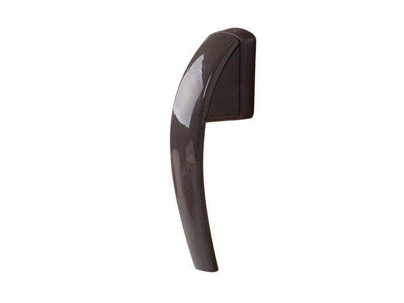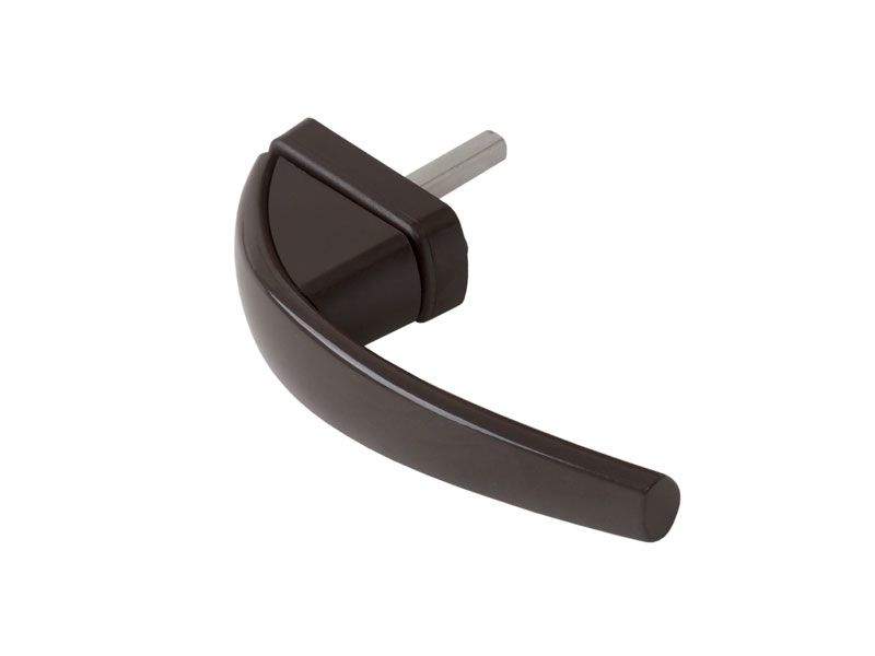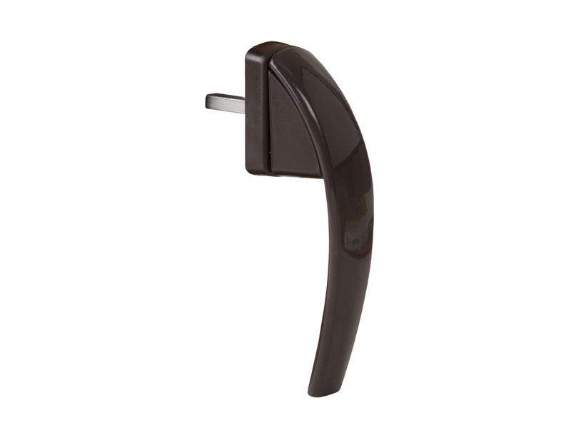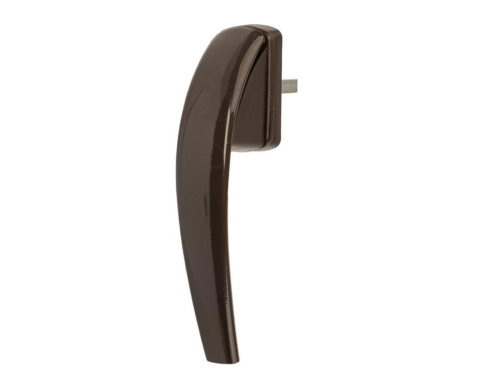 Ручка оконная Internika "Весна" алюминиевая без ключа, коричневого цвета RAL8019, полукруглой формы, штифт 37 мм, 45°, 2 винта 5х45. Предназначена для окон из дерева и ПВХ.
