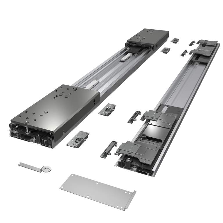 Система может быть оснащена электроприводом открывания дверей, при этом сохраняется возможность открытия двери вручную при отключении питания. Системы с электроприводом, в целях безопасности, блокируют двери при появлении преграды на пути хода двери.