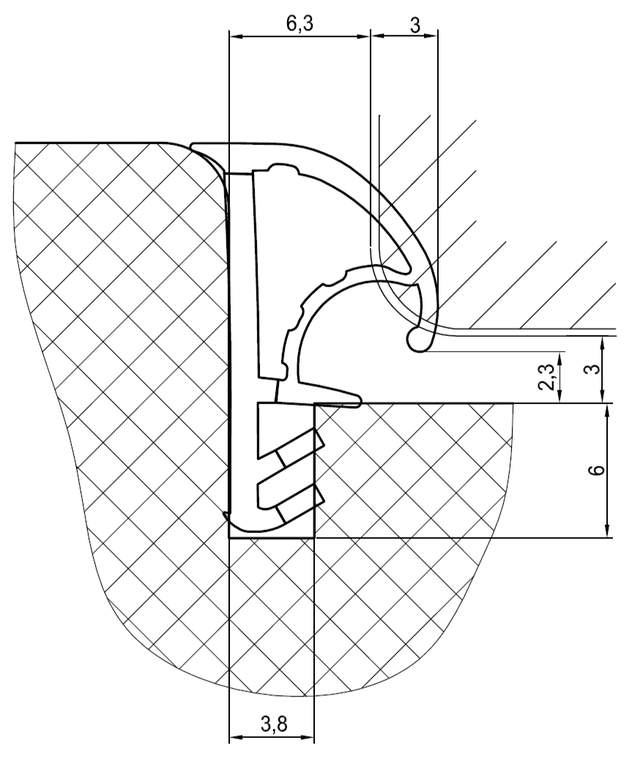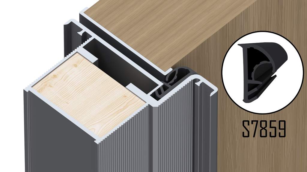 - Для монтажа в паз алюминиевой или деревянной дверной коробки с закругленным (предпочтительно) и прямым углом